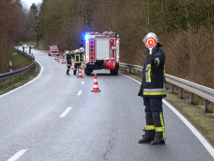 Nach dem Kehren der Fahrbahn konnten die Kameraden wieder abrücken.