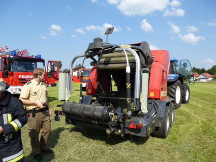 Die Feuerwehrkameraden aus Altusried und Kimratshofen wurden gerufen, da sich eine Person in eine Ballenpresse eingeklemmt hatte.