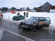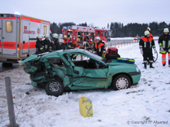Die schwer verletzte Fahrerin musste von der Feuerwehr Altusried aus ihrem PKW befreit werden und wurde dem Rettungsdienst übergeben.